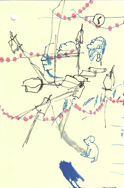 Drawings made during the concerts on Jazz Festival Ljubljana. Drawings were hanged after each concert and created the exhibition/installation in manhole in Cankarjev Dom where the festival took place.